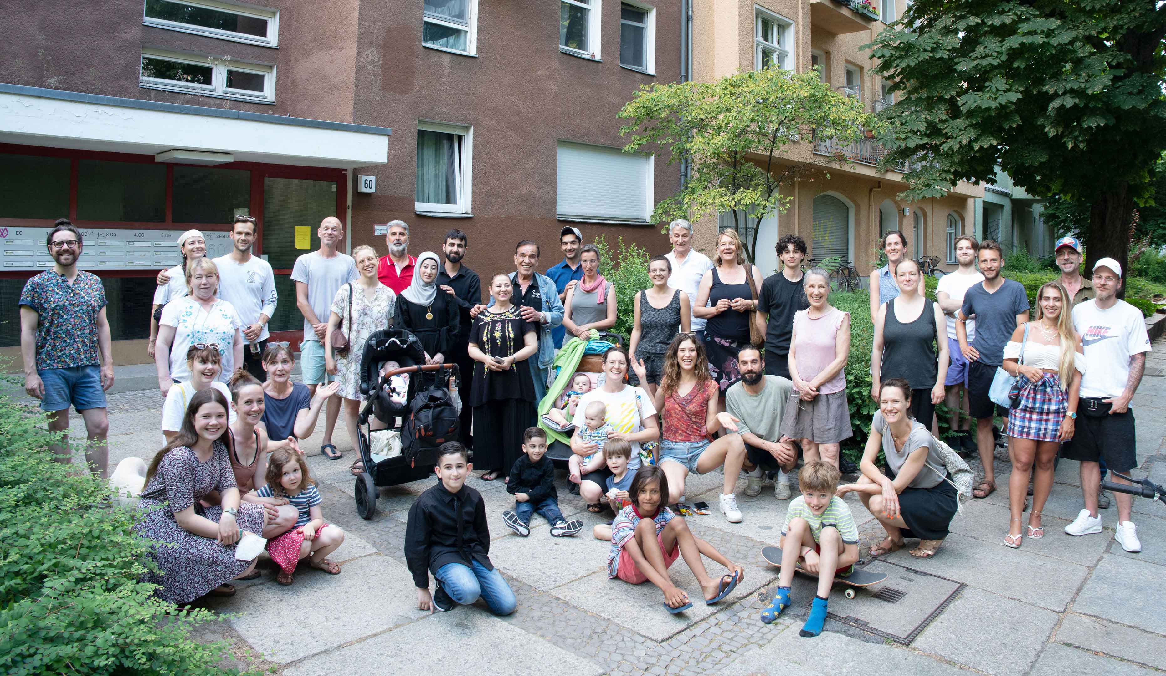 Wir sind der Zusammenschluss aller Mieter*innen der Häuser Segitzdamm 54, 56, 58 und 60 in Kreuzberg — insgesamt 51 Haushalte mit mehr als 130 Menschen. Unsere Häuser liegen im Milieuschutzgebiet und waren als Sozialwohnungen über viele Jahrzehnte im Besitz des Landes Berlin. Sie gehören zu den allerletzten Häusern, die das Land Berlin in den 2010er Jahren noch verkauft hat — an den Immobilienriesen Deutsche Wohnen/Vonovia. We are the association of all the tenants of the apartment blocks at Segitzdamm 54, 56, 58 and 60 in Kreuzberg — a total of 51 households with more than 130 people. Our apartments are located in a ‘neighbourhood protected area’ and were owned by the state of Berlin as social housing for many decades. They are among the very last houses that the state of Berlin sold in the 2010s — to the property giant Deutsche Wohnen/Vonovia.