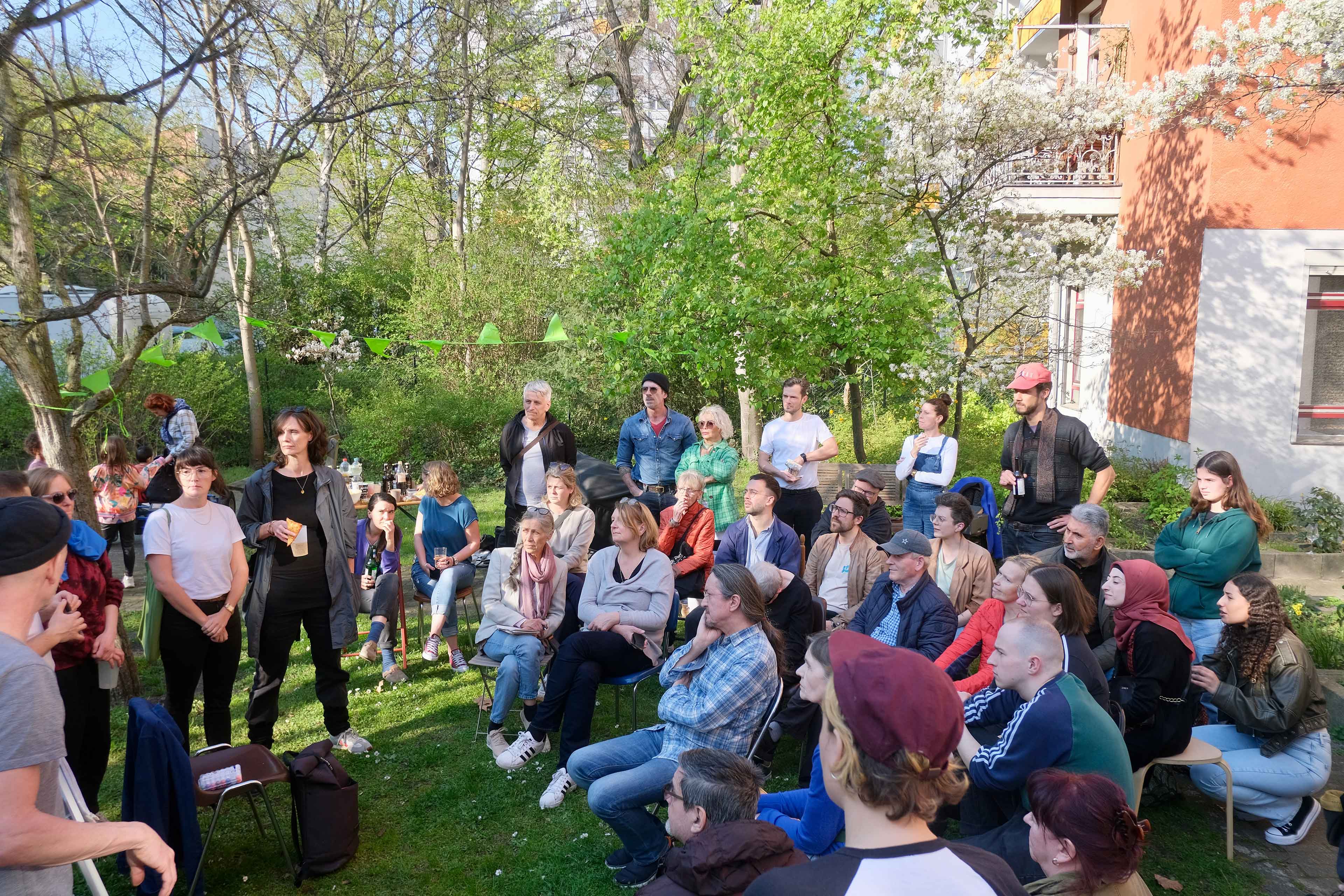 Schon seit 2020 organisieren wir uns darum gemeinsam, um etwas gegen unsere Verdrängung zu unternehmen. Als Verein haben wir mehrere Versuche unternommen, unsere Häuser mit der Unterstützung einer Wohnungsbaugenossenschaft zu kaufen. Nacheinander sind nun aber alle Genossenschaften, mit denen wir zusammengearbeitet haben, abgesprungen – entweder wegen Personalmangel angesichts der Größe des Projekts, oder wegen fehlendem Eigenkapital. That's why since 2020 we've been working together as a group in order to positively create a form of social cooperative ownership and reverse the inevitability of our eviction. As an association, we have made several attempts to buy our homes with the support of a ‘housing association’. However, one after the other, all the housing associations we’ve worked with have now backed out — either due to a lack of staff given the size of the project, or due to lack of equity.